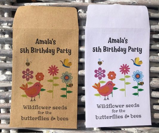Children's Seed Packet Birthday Party Bag Fillers, Personalised - White or Recycled Kraft - 8 designs