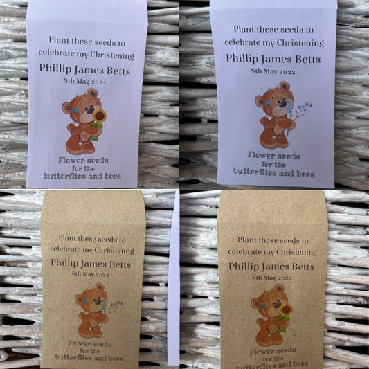 Christening Personalised Favours Seed Envelopes - Choice of Designs, Recycled Kraft or White