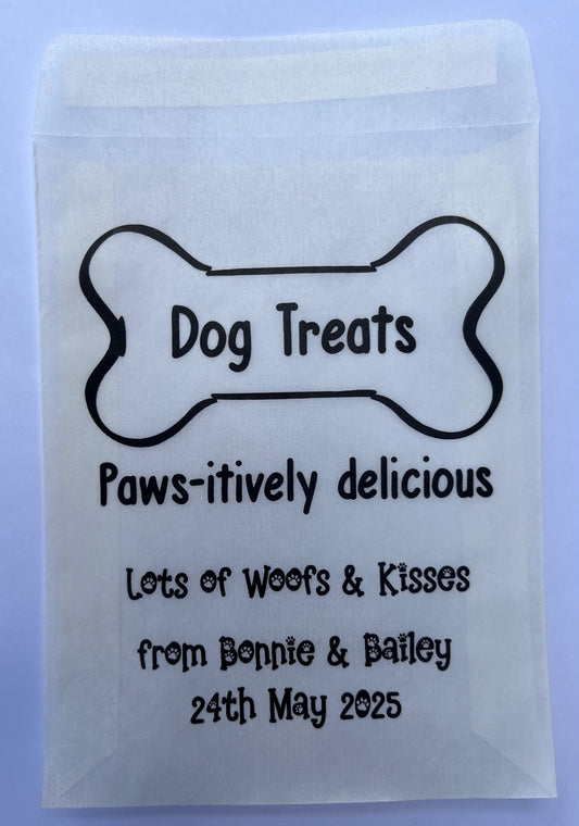 Personalised Pet Treat Bag, Gift for Dogs Cats Party Bags/Wedding Favours - 3 Designs - 117 x 89 mm