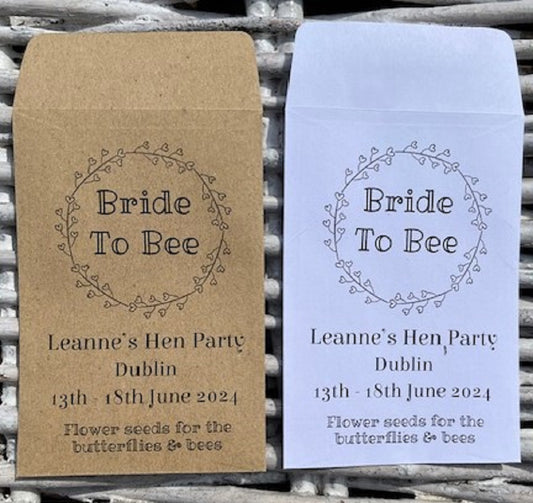 Personalized Hen Party Seed Packet Envelopes, Favours - Choice of Seeds