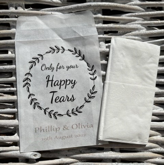 Glassine Wedding Tissue Bags, Personalised - 117 x 89 mm
